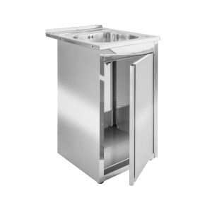 Данная модель включает в себя цельнотянутую мойку и прочный каркас. Мойка выполнена из высококачественной пищевой нержавеющей стали, что обеспечивает долговечность и устойчивость к коррозии. Каркас изготовлен из крашеной стали, что придаёт изделию дополнительную прочность. Регулируемые по высоте ножки позволяют легко компенсировать неровности пола при установке.