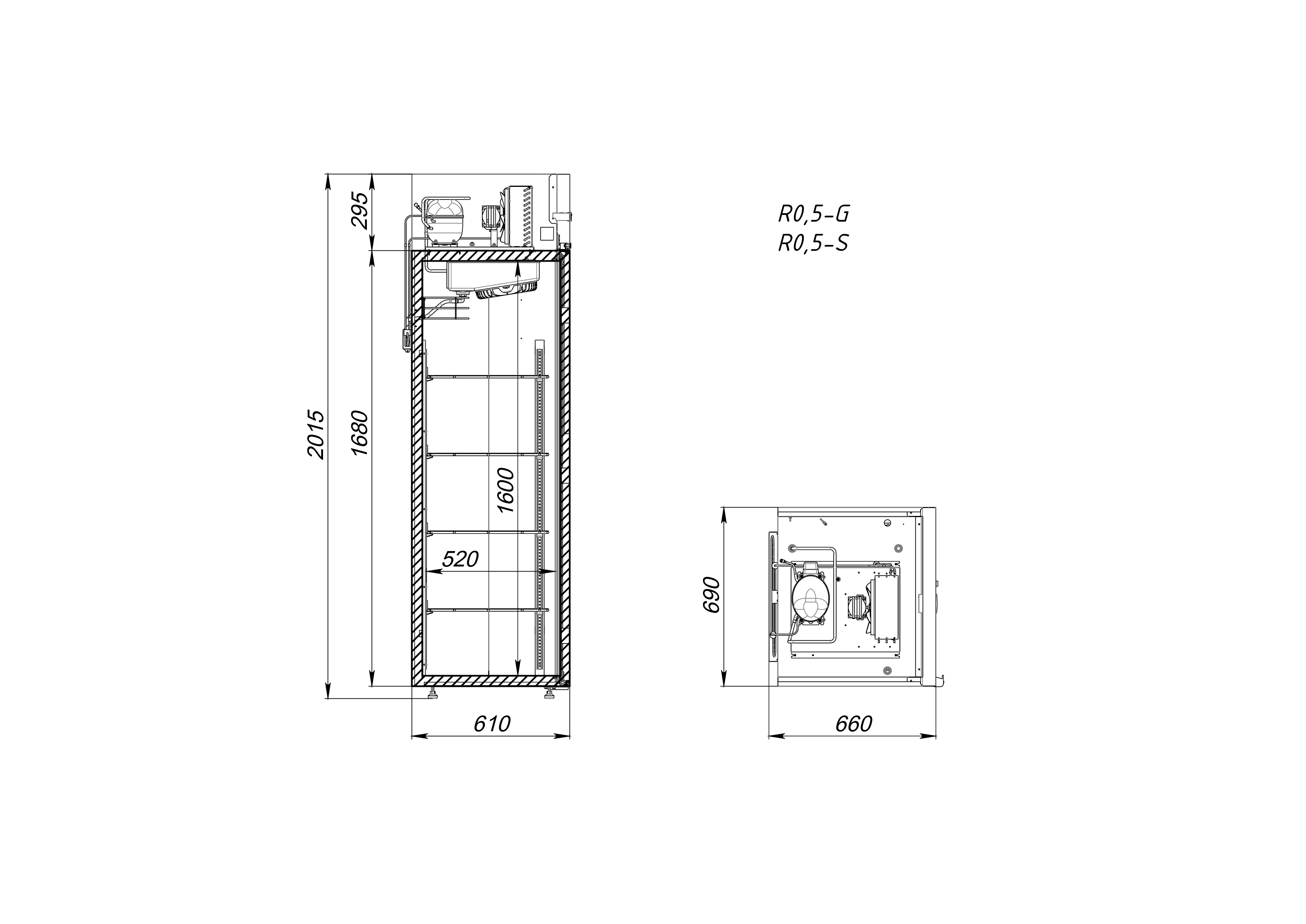 С объемом 500 литров и динамической системой охлаждения, данный шкаф поддерживает температурный режим от 0 до +6 градусов Цельсия. Он имеет напольное исполнение и верхнее расположение агрегата, что делает его удобным в эксплуатации. Габариты шкафа составляют: