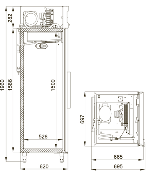 - Габариты: Ширина 697 мм, Глубина 695 мм, Высота 1960 мм