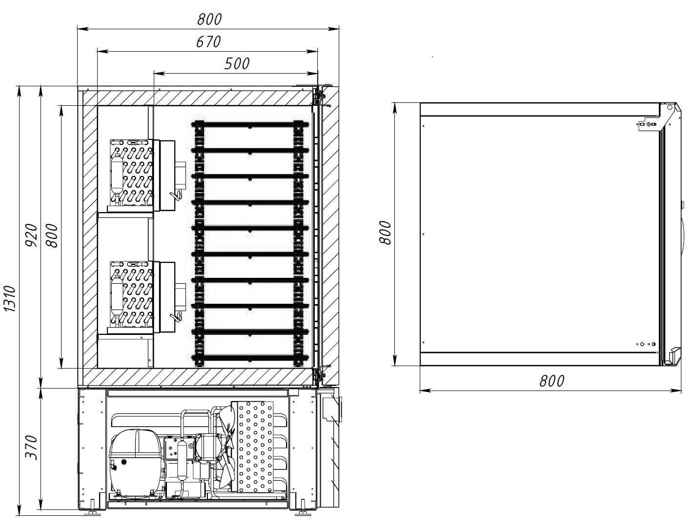 Электропитание устройства осуществляется при напряжении 220 В, а мощность составляет 1,6 кВт. Габариты шкафа составляют 800 мм в ширину, 800 мм в глубину и 1310 мм в высоту, а его вес нетто равен 130 кг. Изготовлено оборудование в России и имеет гарантию на 12 месяцев.