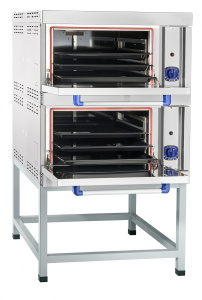 - Две независимые духовки, каждая из которых оснащена тремя эмалированными противнями размером 530х470х33 мм.