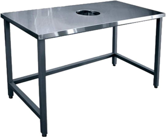 Производственный стол VIATTO СРО-2/800-ЮТ предназначен для сбора отходов и разделки ингредиентов при приготовлении блюд. Оснащён отверстием для отходов и обвязкой с 3х сторон. Столешница изготовлена из нержавеющей стали, каркас - из оцинкованной стали, толщина металла - 0.8 мм.