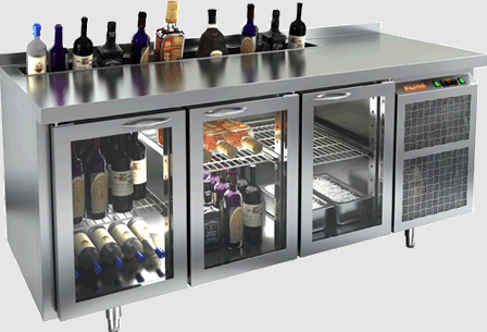 Температурный диапазон внутренней камеры составляет от +2 до +10 градусов Цельсия, что обеспечивает сохранность свежести продуктов. Объем холодильного отделения достигает 435 литров, что позволяет разместить значительное количество товаров. Холодильный агрегат расположен справа, а конструкция стола включает бортик, что предотвращает случайное падение предметов.