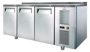 Холодильный агрегат расположен сбоку, что упрощает доступ к системе и обслуживание. Возможность использования гастроемкостей вместо полок добавляет удобства в организации пространства. Стол TM3GN-SC также отличается низким потреблением энергии, что способствует экономии средств на эксплуатацию.