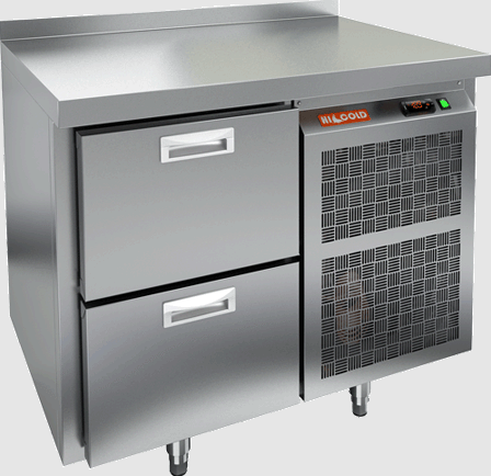 Объем морозильной камеры составляет 150 литров, что делает его идеальным выбором для профессиональных кухонь и предприятий общественного питания. Холодильный агрегат расположен справа, что обеспечивает оптимальное использование пространства. Стол соответствует гастрономическим стандартам, а наличие борта предотвращает случайное высыпание продуктов.