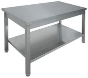 Профессиональный стол VIATTO ПСП-2/1500/600-Н ЮТ предназначен для разделки и нарезки мяса, курицы, овощей, фруктов, полуфабрикатов и других продуктов питания, а также для раскатки теста. Оснащён сплошной полкой на которой возможна установка теплового, холодильного, электромеханического и другого кухонного оборудования. Столешница изготовлена из нержавеющей стали AISI 430 (толщина - 0.8 мм), каркас - нержавеющая труба 40х40, подложка столешницы - из ламинированного ДСП.