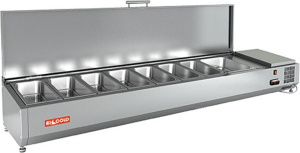С размерами 1835 мм в ширину, 325 мм в глубину и 279 мм в высоту, она компактно впишется в любое пространство. Объем витрины составляет 58 литров, что позволяет разместить до 8 контейнеров формата GN1/4.