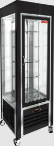 Управление устройством осуществляется с помощью электронной панели, что делает процесс эксплуатации простым и интуитивно понятным. Витрина выполнена из крашеной стали черного цвета (RAL 9005) с рамкой из нержавеющей стали, что придаёт ей стильный и современный вид. Дополнительные функции включают: