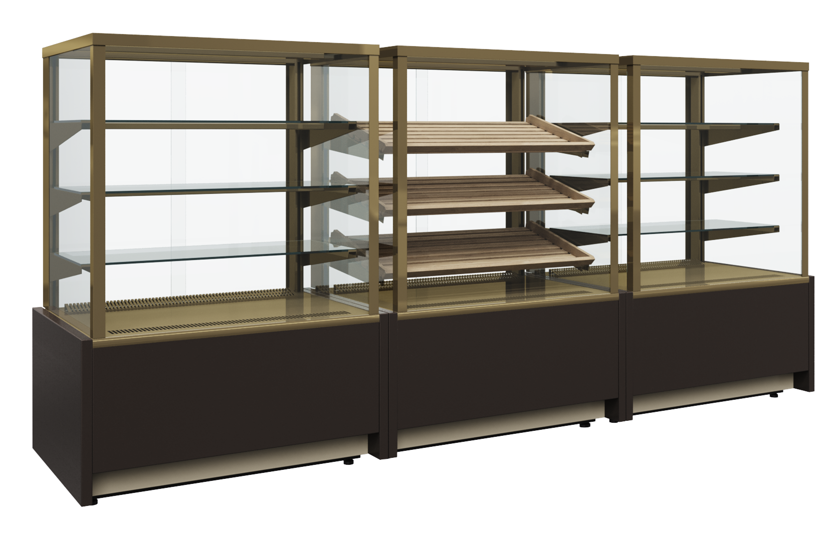 Витрина кондитерская Carboma KC70 VH 0,6-1 LIGHT Chocolate 0102-0109 (ВХСв-0,6д Cube) представляет собой идеальное решение для оформления торговых площадей. Этот стильный и современный элемент интерьера выполнен в кубическом дизайне и оснащен подсветкой каждой из трех полок, что придаёт витрине привлекательный вид. Она предназначена для демонстрации разнообразной продукции, включая пирожные, выпечку, пиццу и хлеб.